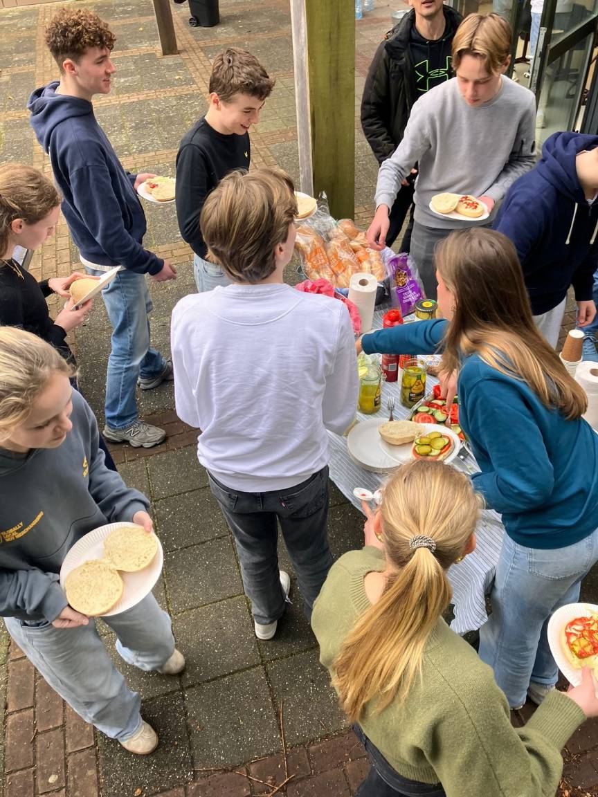 In december tijdens de grote BSG Kerstbingo wonnen klas A4Y en klas A3X hamburgers voor de hele klas. Op dinsdag 17 maart was dan het eindelijk zover en konden we met een (beetje) zon genieten van een heerlijke burger op het bruggerplein. Iedereen bedankt voor de gezelligheid!